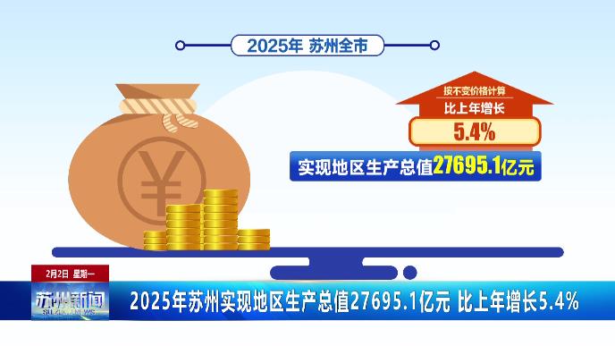 2025年蘇州實現(xiàn)地區(qū)生產(chǎn)總值27695.1億元 比上年增長5.4%